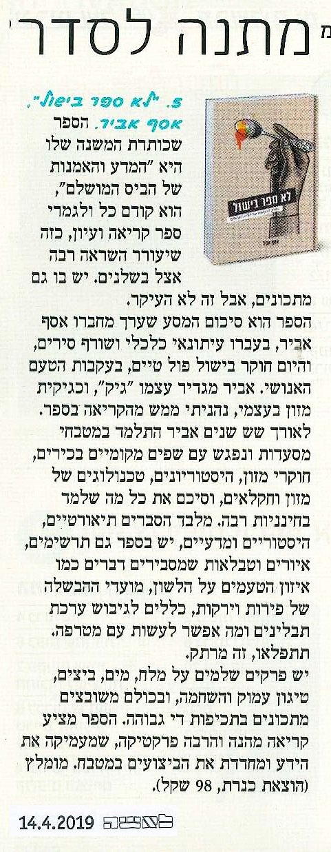 "זה באמת לא ספר בישול. זה ספר שעוזר לשלוט באוכל ובטעם, בעזרת מדע"(ידיעות אחרונות)